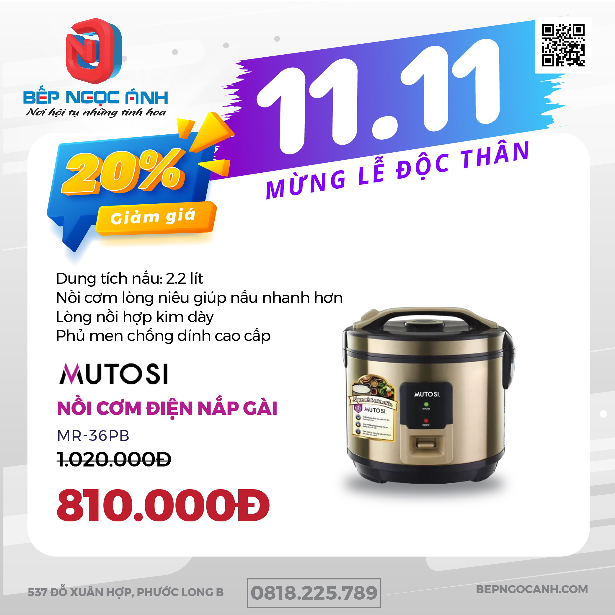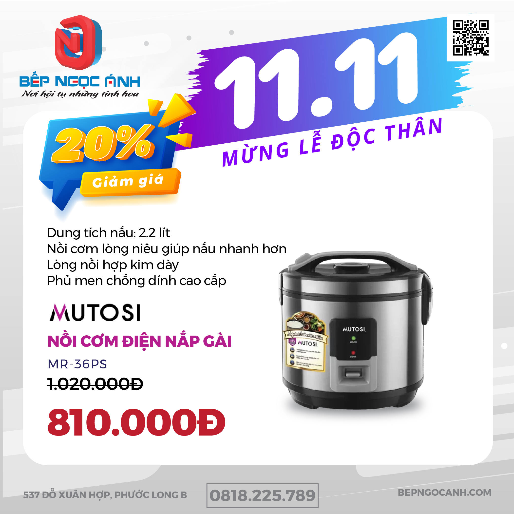 🍚 Nồi cơm điện MUTOSI MR-36PB Giảm 20%💥 Chỉ còn: 810.000đ⬇️