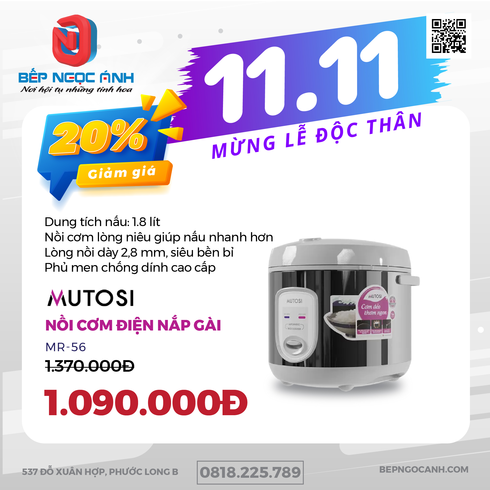 🍚 Nồi cơm điện MUTOSI MR-56 Giảm 20%💥 Chỉ còn: 1.090.000đ⬇️