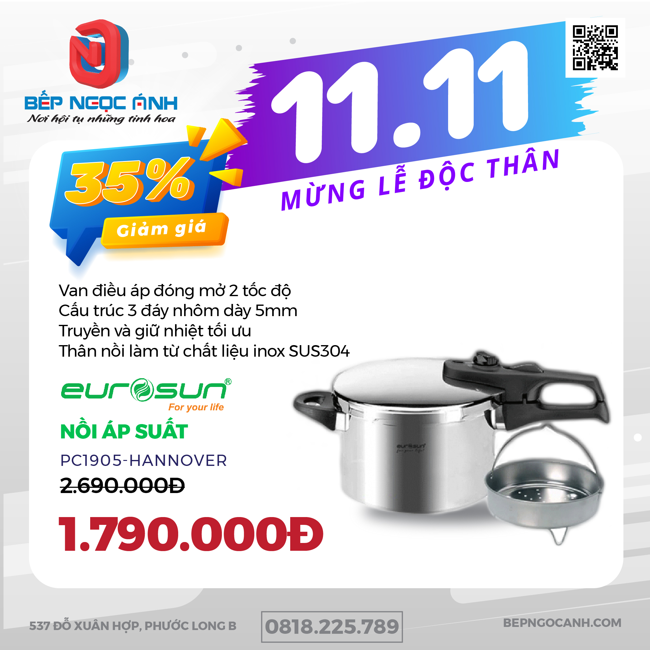 🫕Nồi áp suất EUROSUN PC1905 Giảm 35%💥 Chỉ còn: 1.790.000đ⬇️