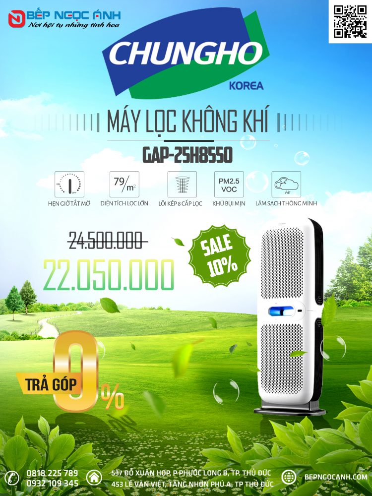 Hệ thống bếp Ngọc Ánh là đơn vị nhập khẩu và phân phối máy lọc không khí CHUNGHO chính hãng. Khẳng định uy tín, chất lượng xứng đáng với niềm tin khách hàng.