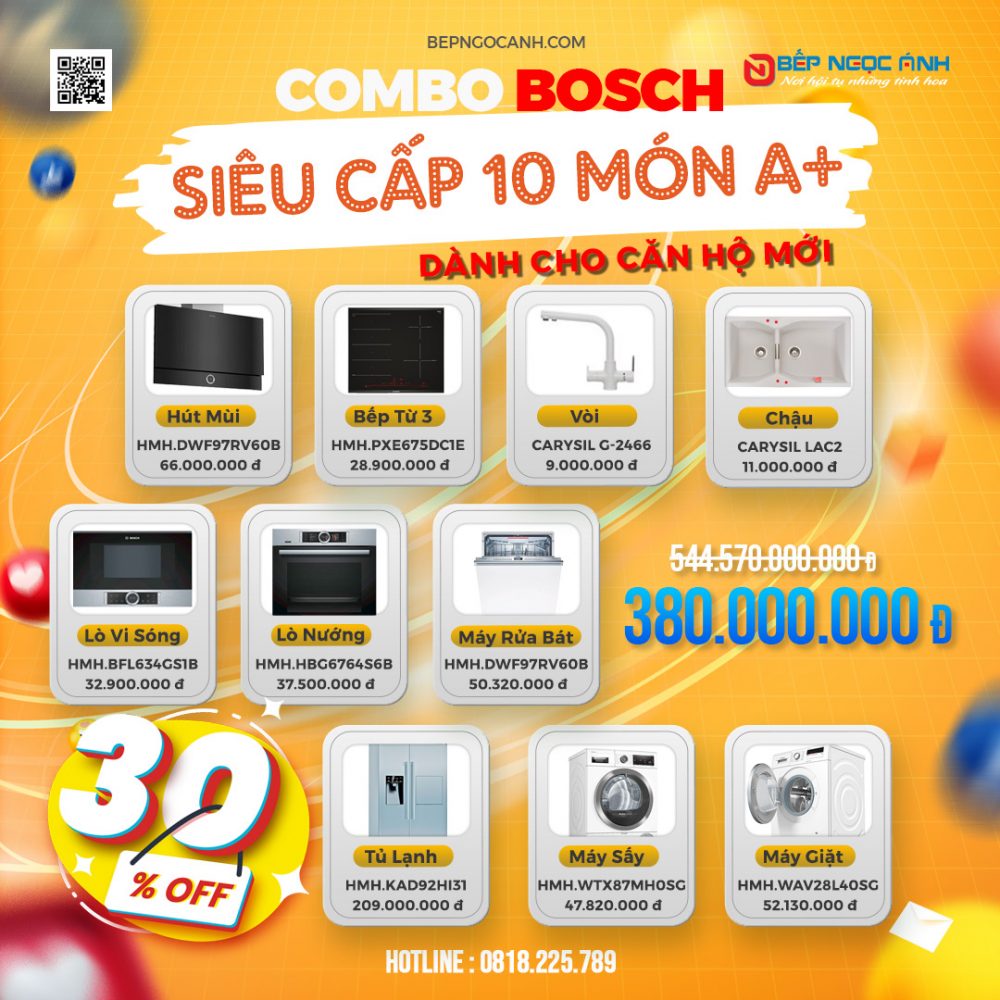 - Gói COMBO này được BẾP NGỌC ÁNH chọn lựa những dòng sản phẩm cao cấp về chất lượng cũng như tính năng của thương hiệu BOSCH.
