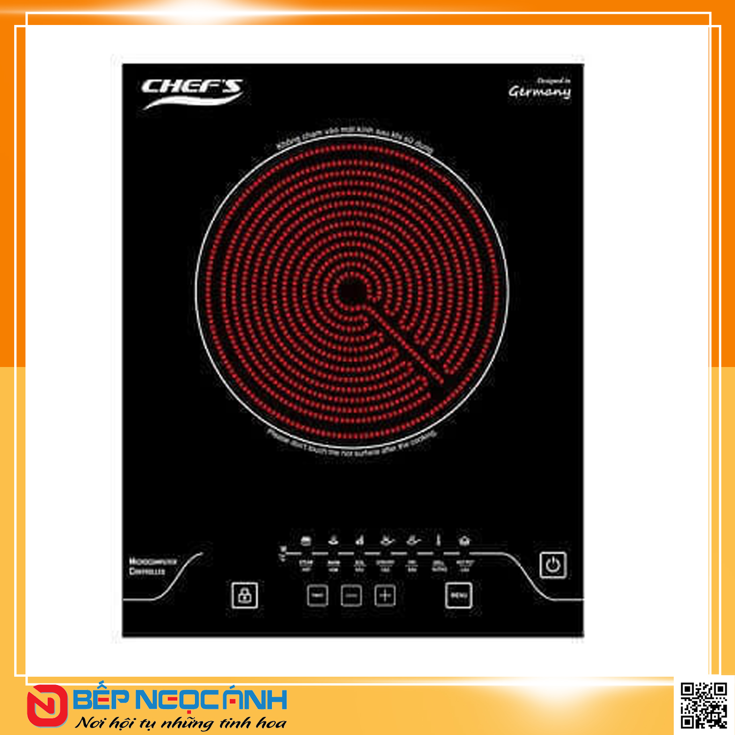 - Tính năng truyền nhiệt định hướng của bếp hồng ngoại ( chỉ nóng vùng nấu, có thể chạm tay vùng xung quanh mà không nóng)