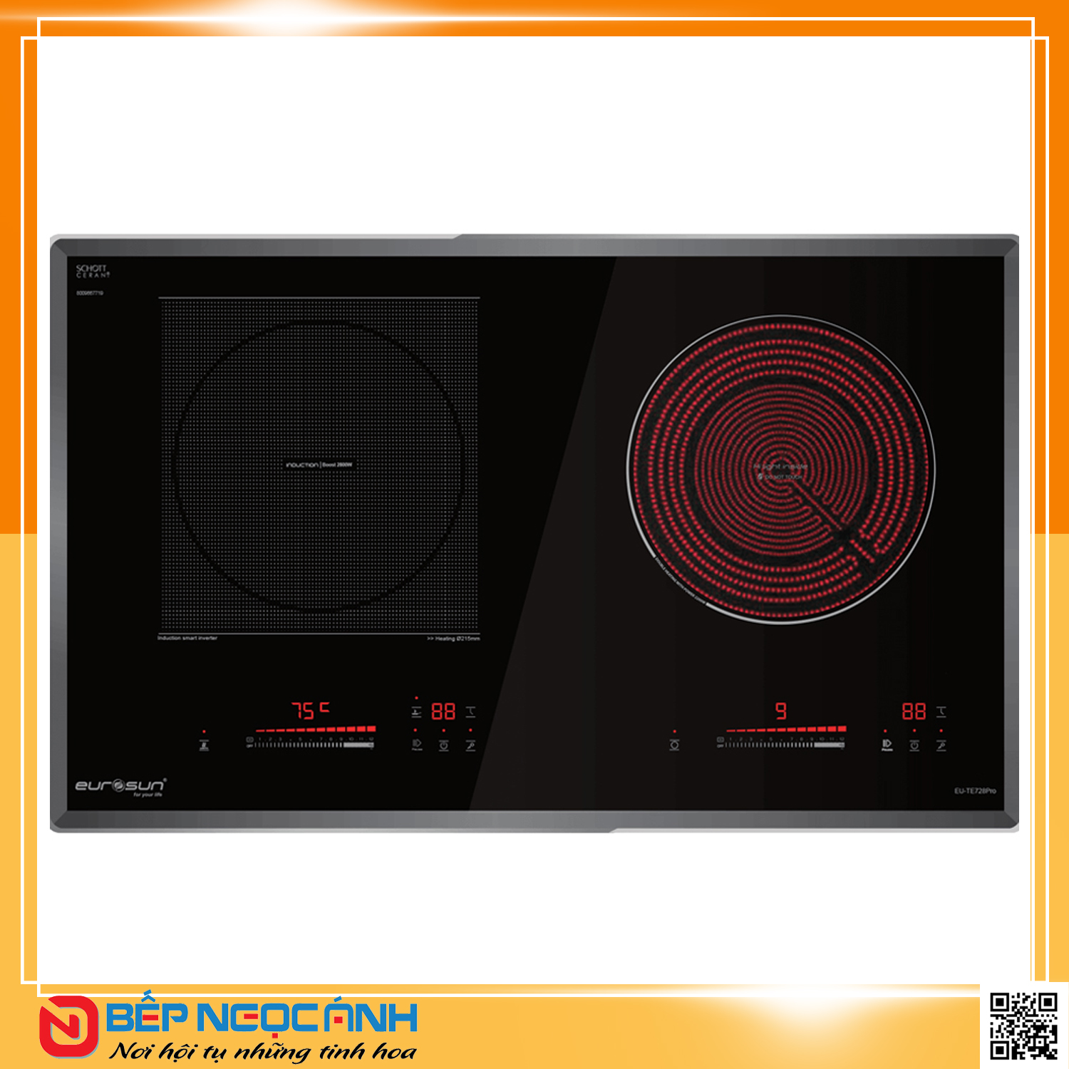 ▶️ Mặt kính SCHOTT CERAN vát 4 cạnh, viền hợp kim nhôm cao cấp.