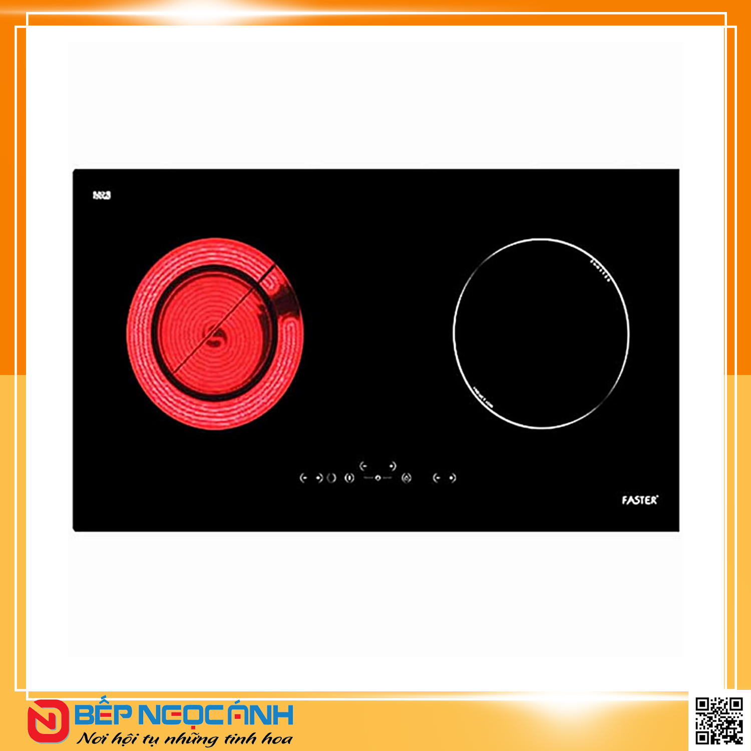 Bếp 02 lò; 01 bếp từ có chức năng “Booster” siêu nhanh &01 bếp điện hai vòng