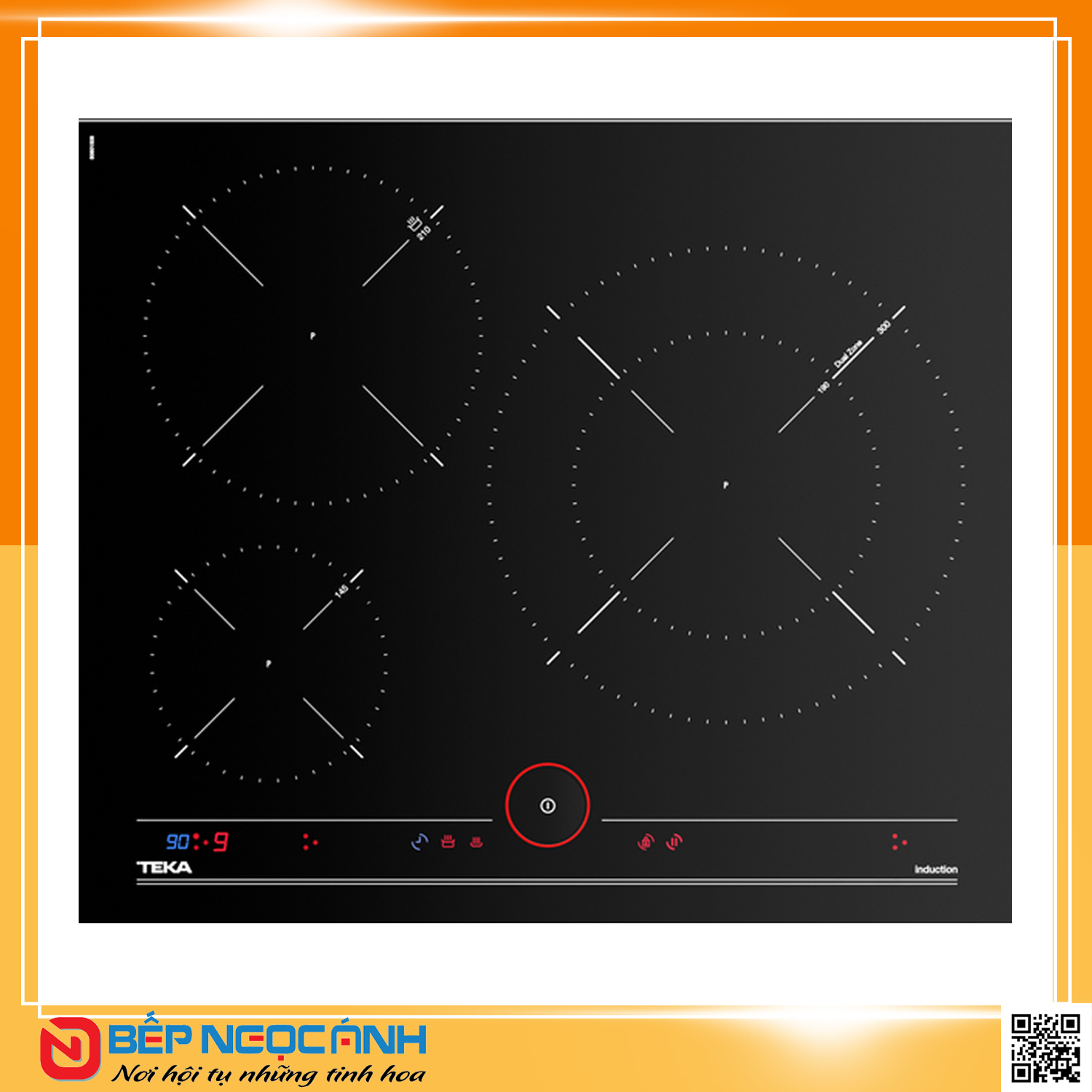 - 04 mặt bếp nấu: 01 bếp có vòng nhiệt Ø