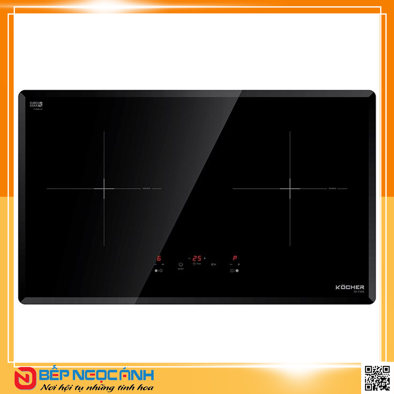 + Mặt kính nguyên khối màu đen, vát cạnh Eurokera chính hãng