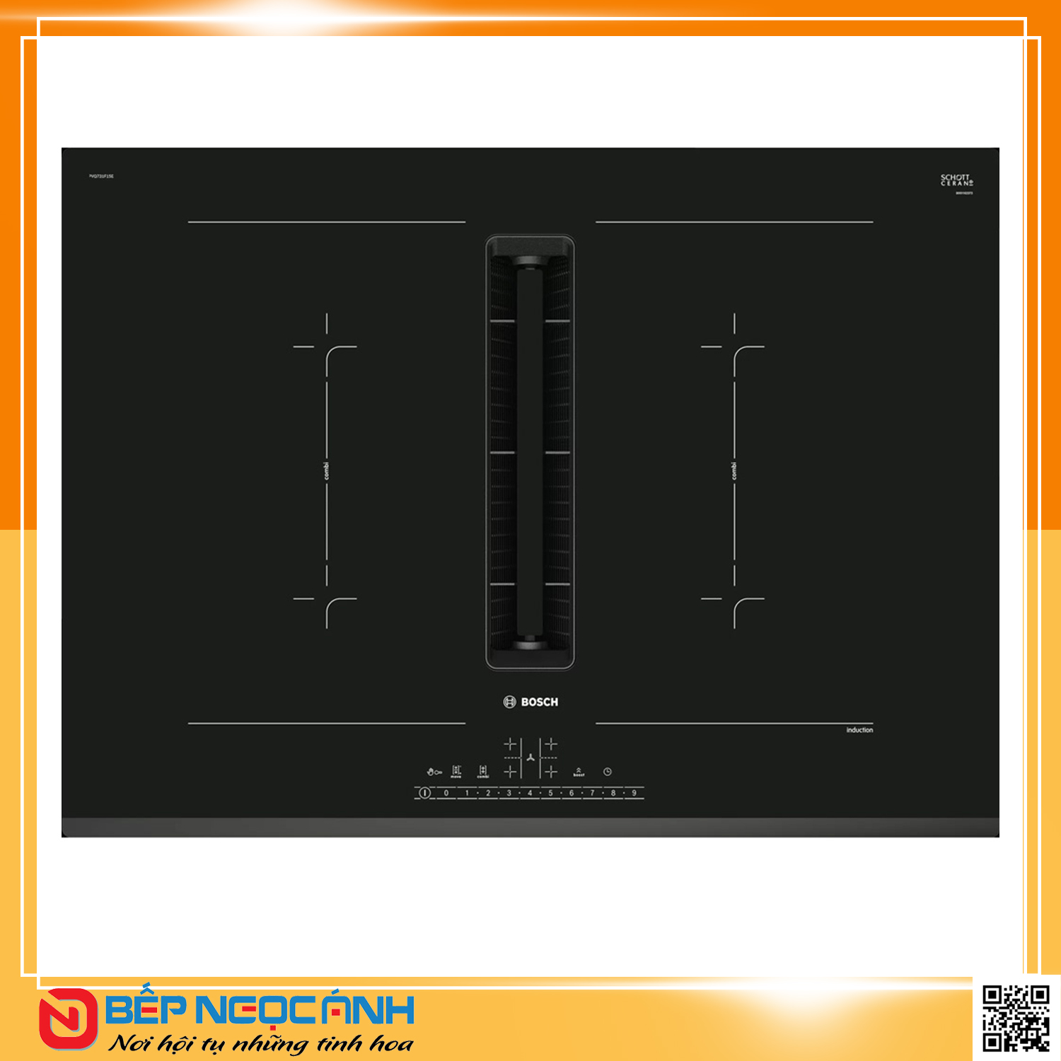 ‣ Bề mặt bếp bằng gốm thủy tinh Schott, vát cạnh trước.