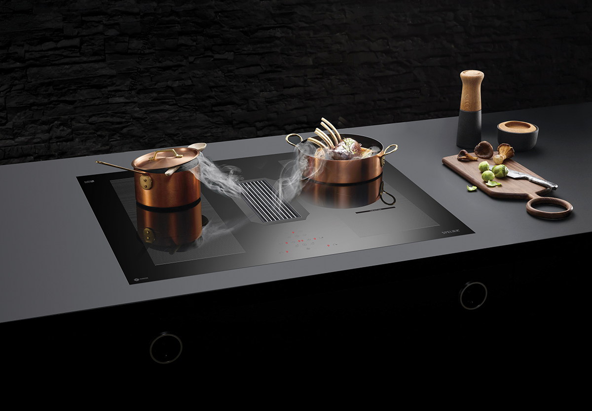 Bếp từ kết hợp hút mùi ở giữa, hút mùi và hơi nước ngay trong quá trình nấu ăn