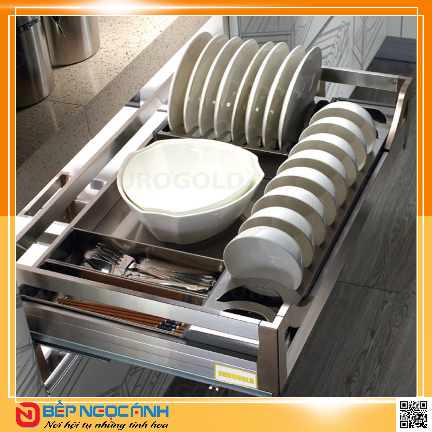 Giá bát đĩa inox hộp âm tủ, ray giảm chấn EU133700 – Eurogold