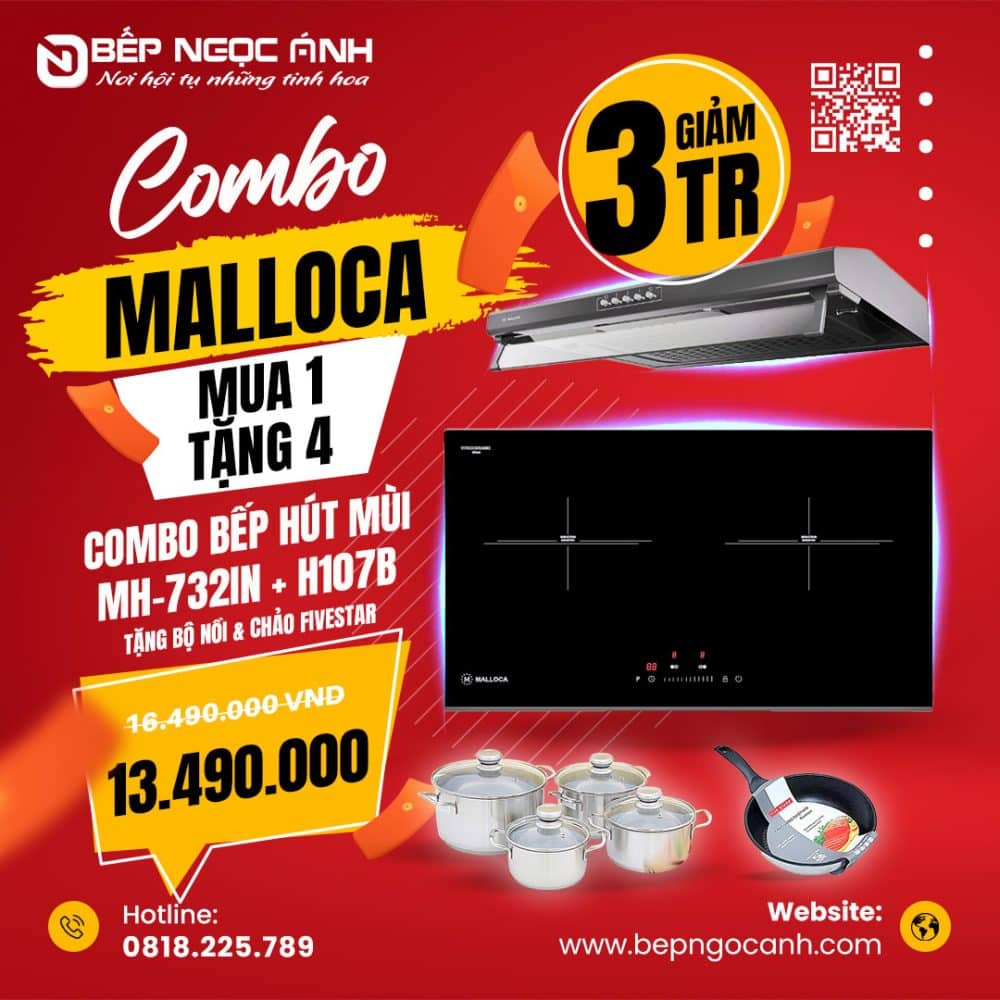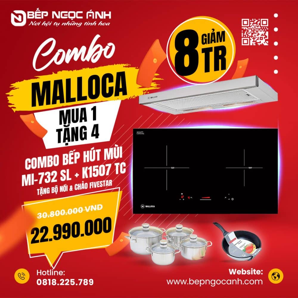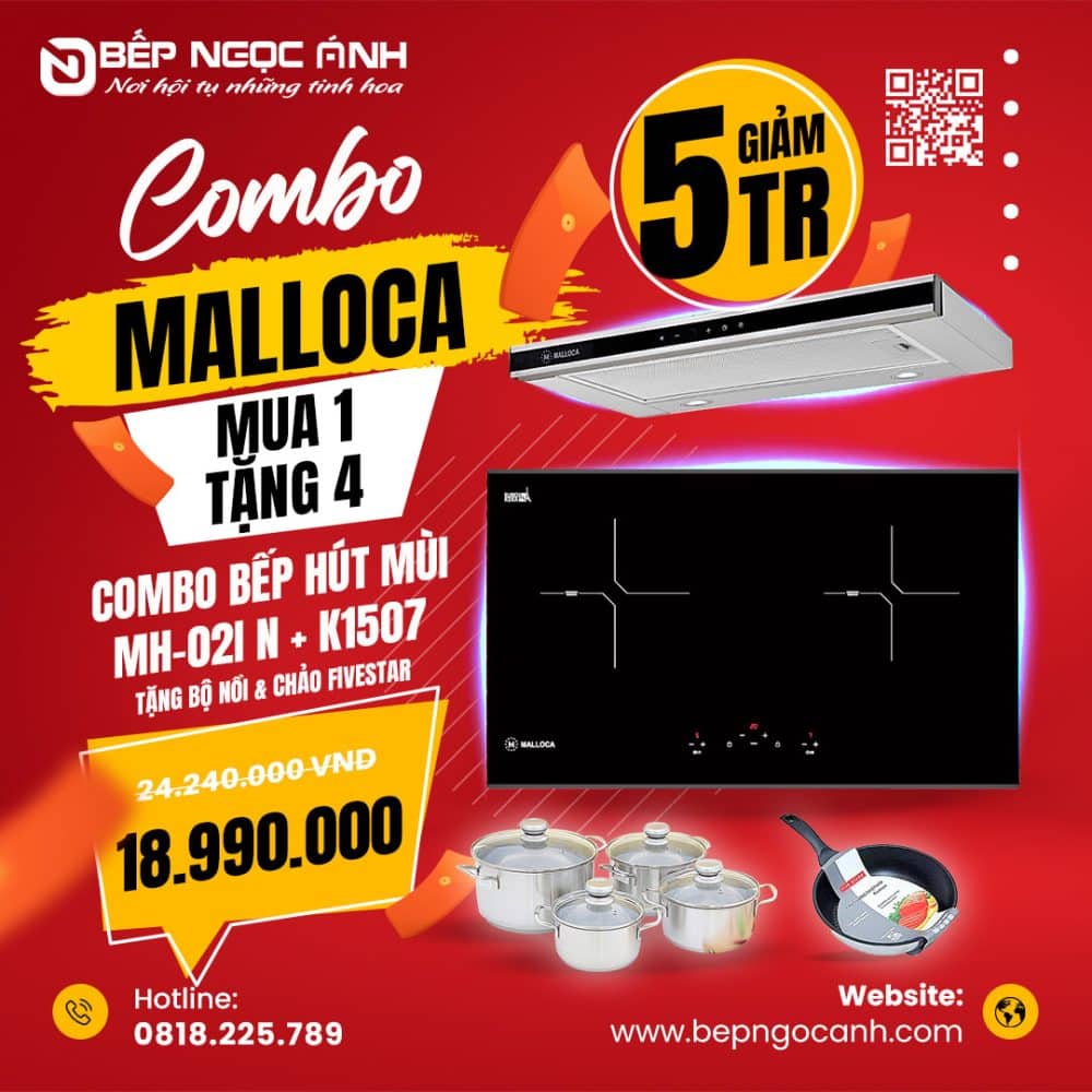 4.Tham khảo các COMBO Bếp từ & Hút mùi Malloca tại Bếp Ngọc Ánh